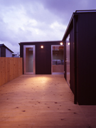 2階のデッキ部分。ハコ同士は互いに分離していて屋外のデッキ空間でつながっています。