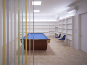 リビングでビリヤードができる家。スリークッションの台は重量1トン。それに耐えられる床と、スペースを確保。平屋建てにすることで大きな空間を作ることができました。